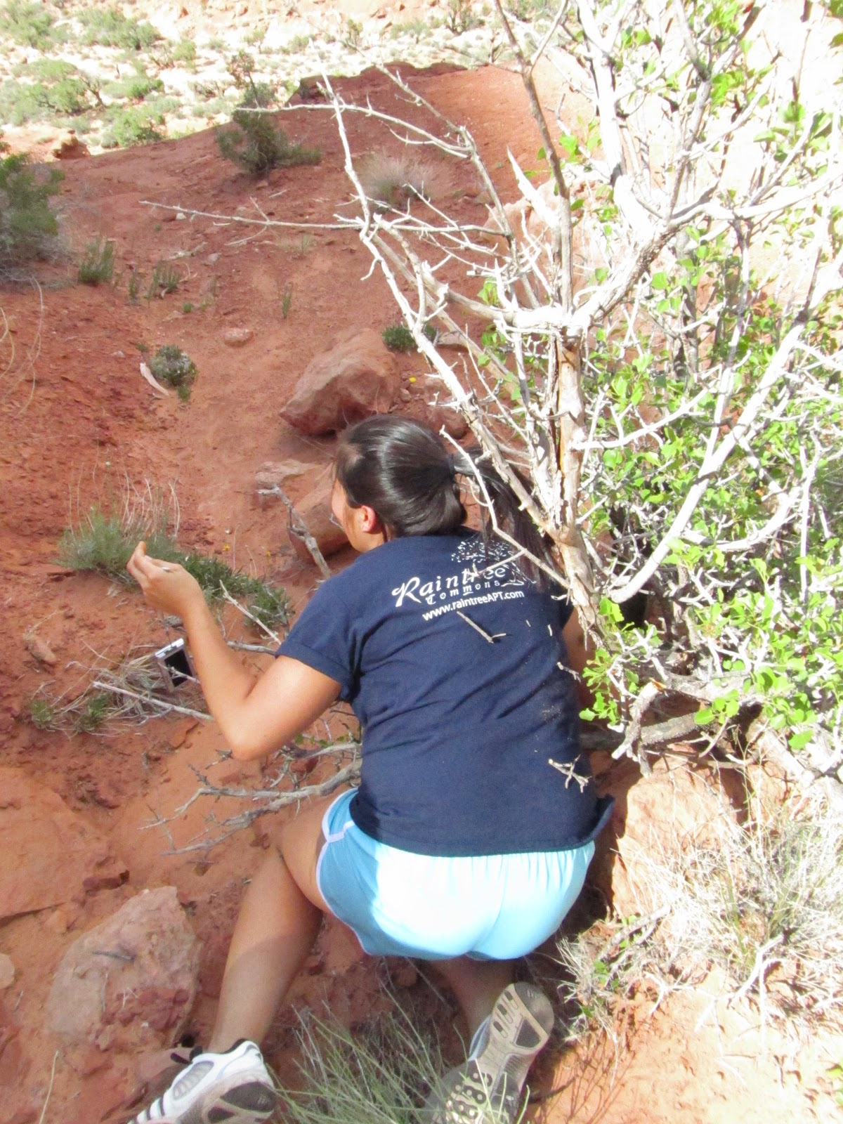 Stacey got attacked by a bush and decided to fight back by falling on it.