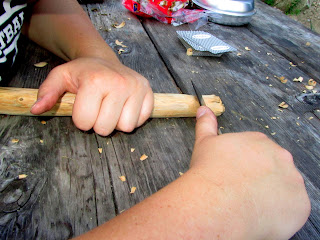 We only had one spoon. So Riss thought it was a cool idea to widdle our own cooking spoon! Mine was actually starting to look like a spoon. However, you would have probably gotten 50 splinters if you used it..